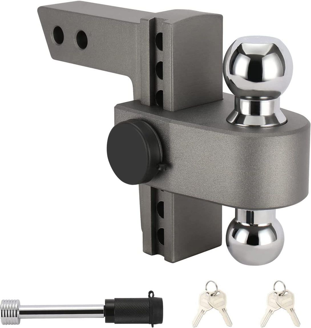 - 🚜【ADJUSTABLE BALL MOUNT】 Double-headed hitch balls allow for supreme towing capacity, enjoy a 6" drop depth and a 6" rise height, allowing you quick and simple to adjust your hitch to the perfect level, for different vehicles tow. The pins hold hitch balls in place and allow for a quick change-out system.