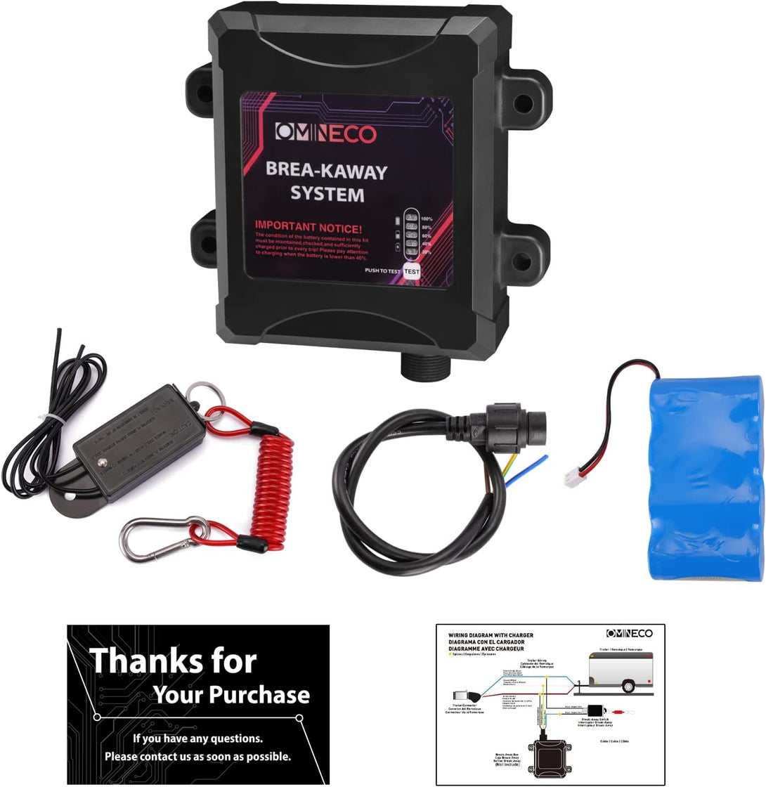 OminEco OE21845 Trailer Breakaway System, Coiled Cable Switch, LED Indicator, 12V Battery Box with Charger, Used for Electric Braking System