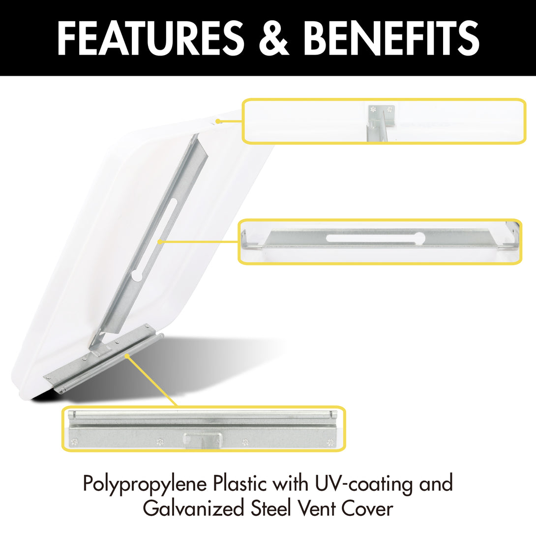 2. MATERIAL: RV ceiling vent cover is made from PP plastic (Polypropylene) with UV-resistant - Sun protection that extends the lifespan. RV metal vent covers: Steel metal bracket - Add rust-proof to protect the surface of the steel from corrosion, its service item's life extended.