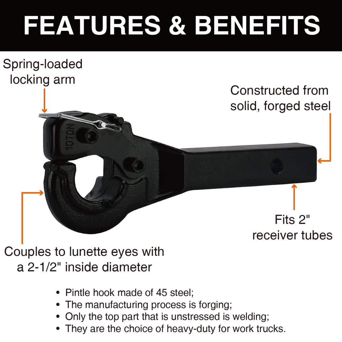ONLTCO ON30557 Pintle Hitch Receiver Hook 10 TON For 2" Receiver | 20000lbs