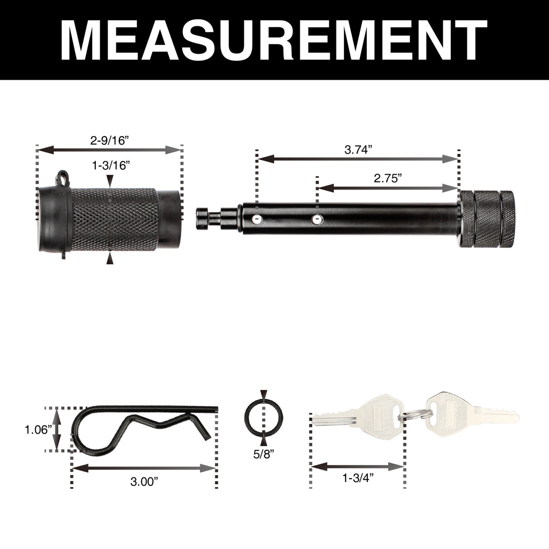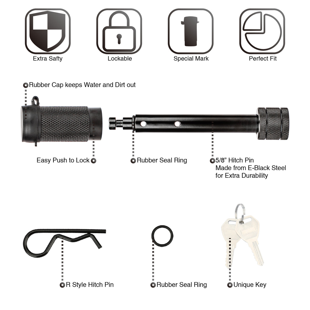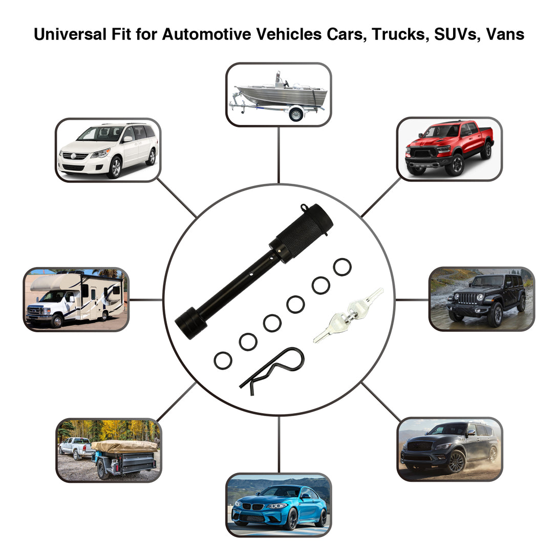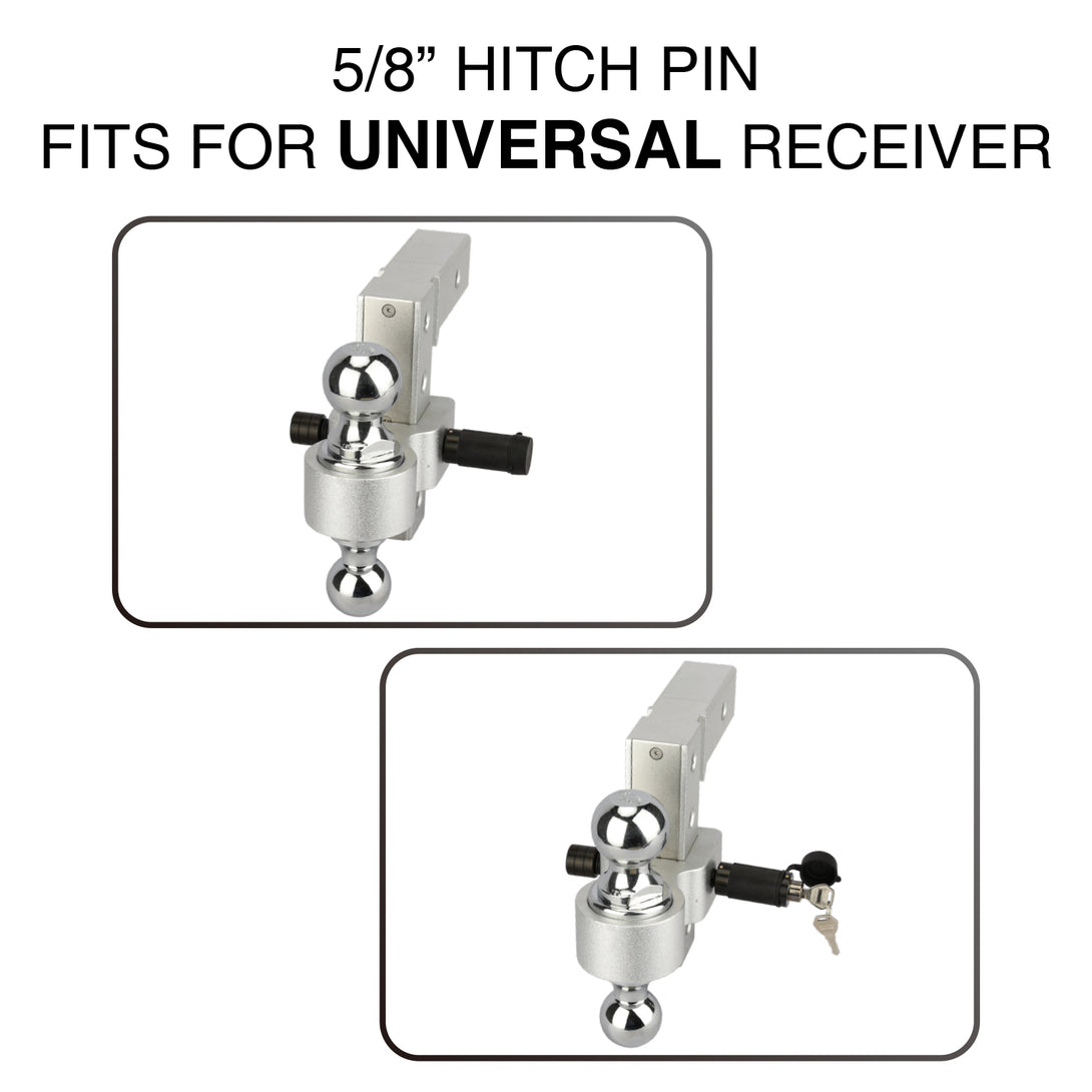 Universal Compatibility: The versatile 5/8" (16mm) hitch lock pin fits various hitch receivers and accommodates a wide range of towing applications, with a usable length of 3.74" (95mm) and an adjustable rubber for a customized fit.
